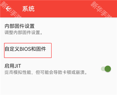 7、点击【自定义BIOS和固件】(有些游戏不用这些固件,可跳过这步)。