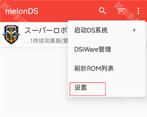 1、打开melonDS模拟器中文版,点击右上角三点标识,选择【设置】。