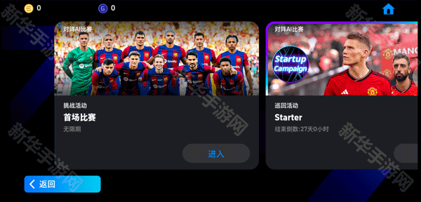 3、在首页中选择真实比赛或梦想球队比赛,带领球队去进行比赛;