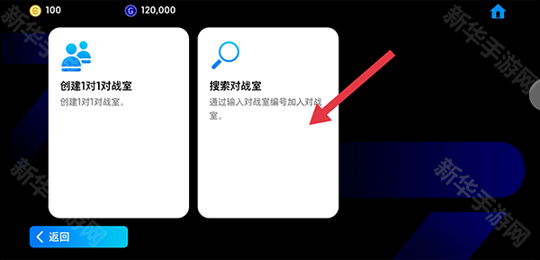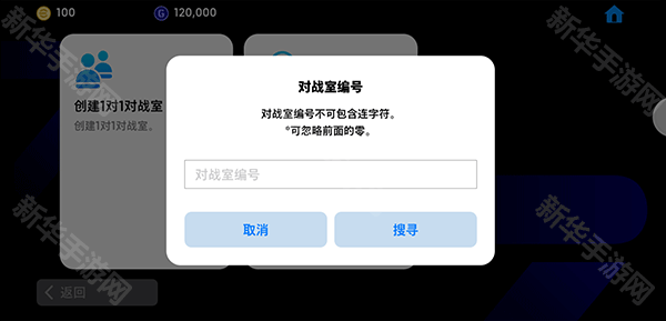 4、然后将好友创建的对战室编号输入在框中并点击搜寻加入对战室;