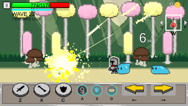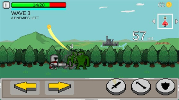 2.进入关卡后点击左侧的按钮控制角色移动,右侧的按钮是使用长剑、弓箭、防御
