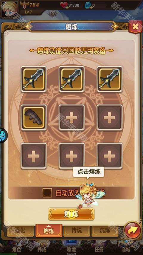 5、最后游戏内无用的装备可以熔炼掉换取材料。