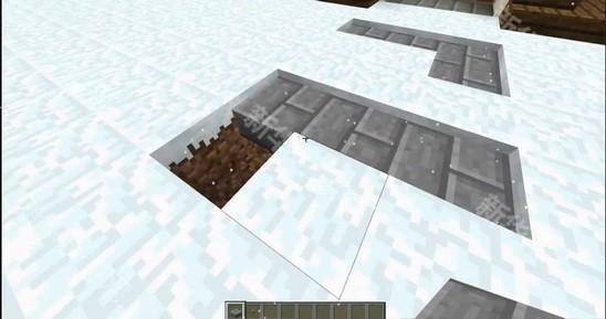2、分别在地图的2个对角位置挖2格深,放置一个红石块定位。