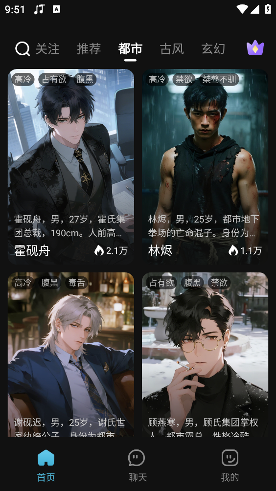 1、数百位个性鲜明的AI角色等你邂逅:霸道总裁的甜蜜宠溺、温柔邻家男孩的细腻关怀、二次元美少女的俏皮互动、哲人导师的深度对话……从古代侠客到未来星际旅人,从萌宠到神秘精灵,总有一款戳中心动点,解锁修罗场吃瓜、CP嗑糖、家庭温馨等无限玩法。