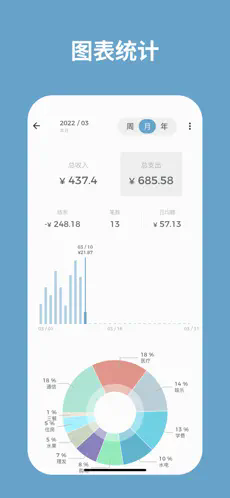 4、数据备份:记账助手软件还为用户提供了数据备份功能,防止用户在手机丢失或损坏的情况下丢失数据。
