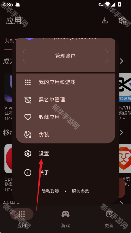 4、点击左上角的“更多”可以看到应用菜单,你还可以在此页面对账号、下载、应用和游戏等进行设置操作;