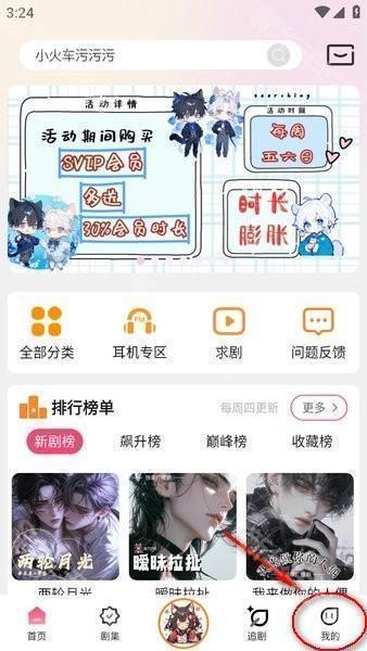 6、最后,登录成功了以后,就可以去首页选择或者搜索要听的广播剧了。