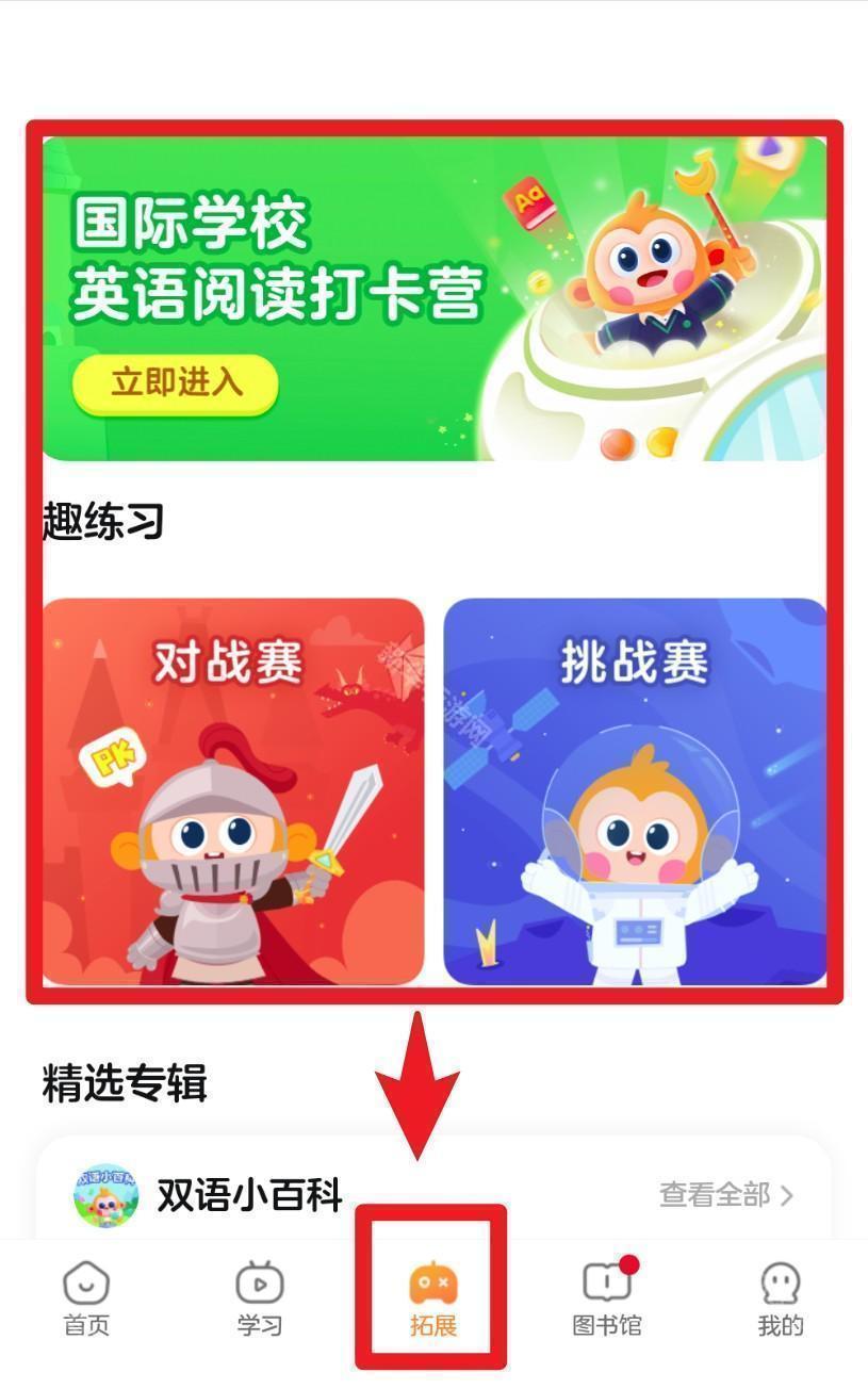 3. 在“拓展”模块中可参与对战赛、挑战赛等趣味练习,通过互动形式巩固所学。