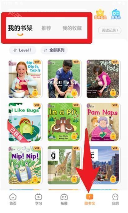 4. 进入“图书馆”可浏览全部绘本资源,支持收藏管理、分级阅读与历史记录查看。