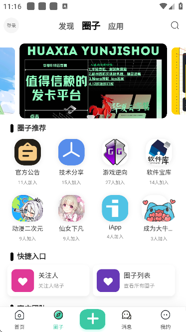 3、“圈子”页面,用户可以加入感兴趣的群聊,结交更多志同道合的好友。