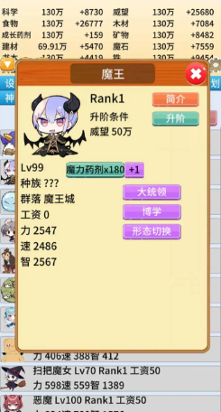 2.合理配置怪物,平衡资源配置,研究技术,增强魔族的整体实力。
