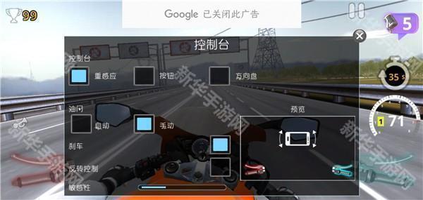 7、设置控制台,通过重力感应或手动操作,驾驶你的摩托车。