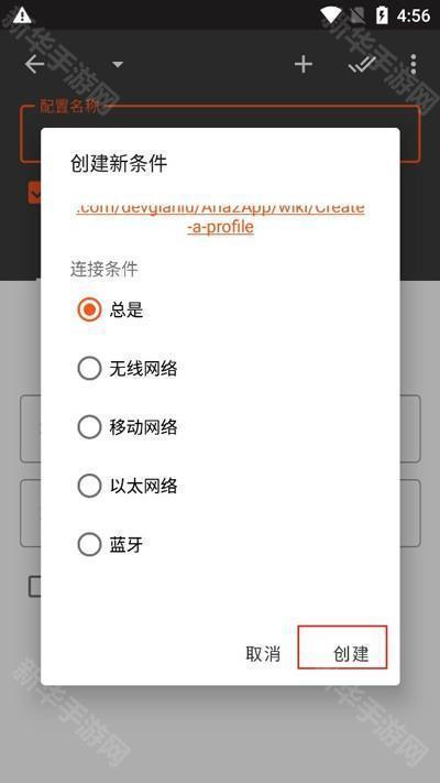 2、选中连接条件后点击创建