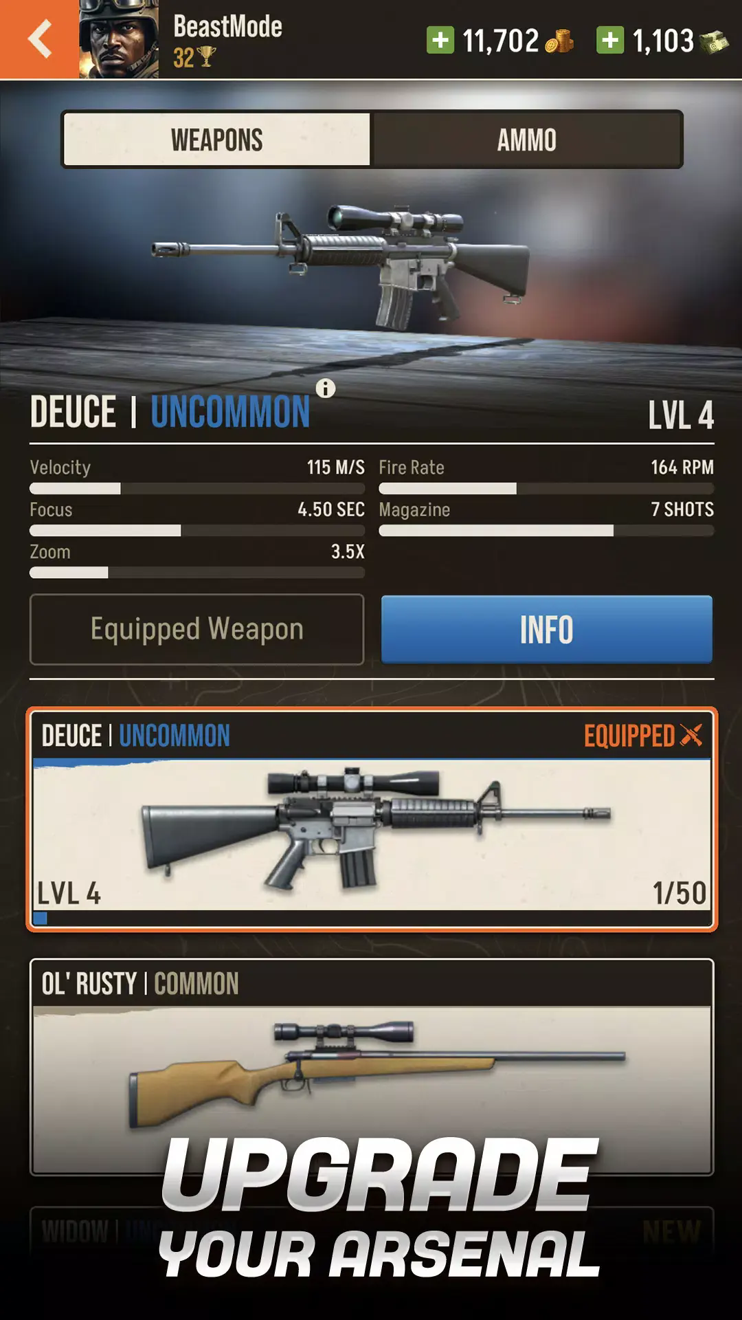 1.解锁并增强现代狙击步枪、高科技瞄准器和专用弹药,以提高射击效率。