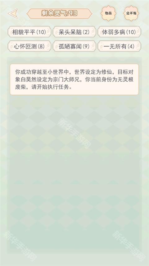 1.每次你穿越,都是一个新的小世界,自由选择世界背景、命运、属性和天赋。
