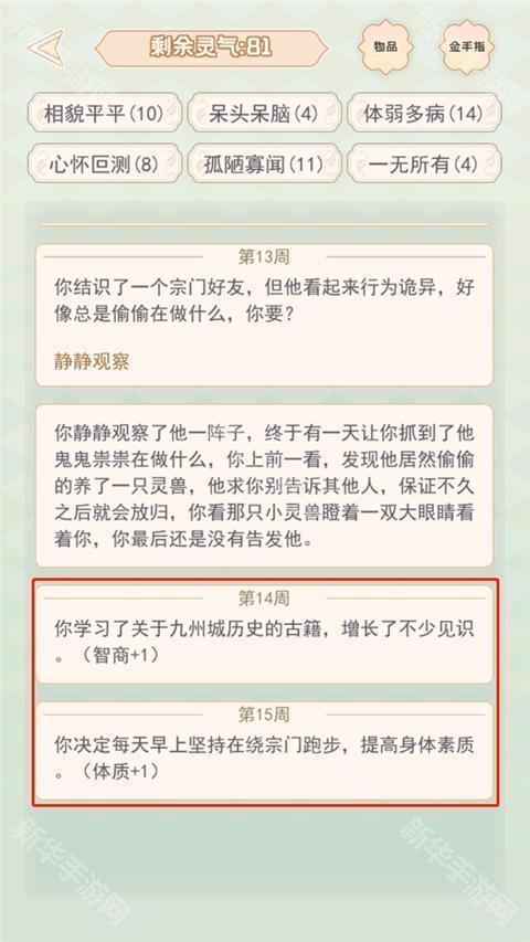 5、选择完随机情节之后,会出现相应的属性加成或减少;