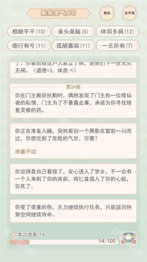 6、当然,如果选错之后,玩家也有可能一命呜呼,结束快穿。