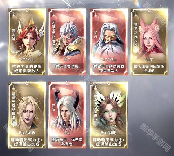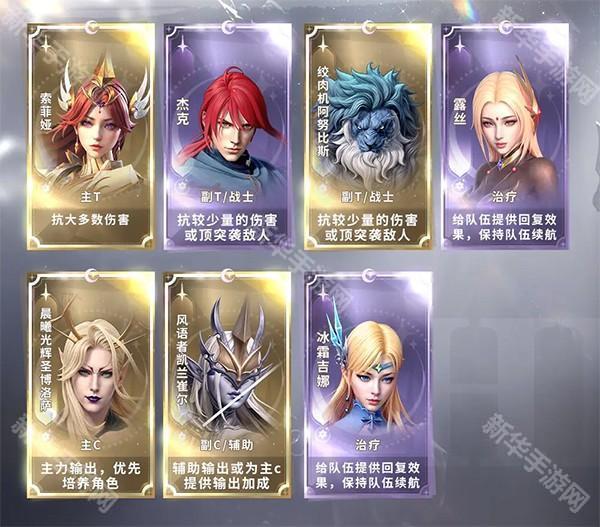 该阵容中的精英伙伴和阿努比斯是游戏前期送的,中途抽到定位相同的伙伴可以直接替换。晨曦光辉作为少有的远程单点输出,属于主C的最佳人选之一,一些前排较肉的关卡可以比较轻松突破。副C的位置可以用其他类似的输出替换,例如慈悲的老艾德、风语者凯兰崔尔等。