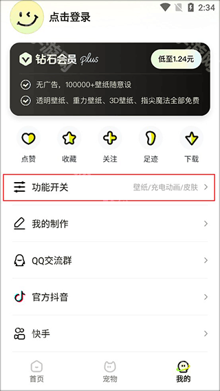 进入个人页面后我们找到功能开关,然后我们点击进入。