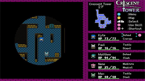 《新月之塔》这是一款rpg冒险类型的游戏,游戏由“Curry Croquette”工作室出品,游戏的玩法相当的硬核,结合了经典的老式日漫画风和8BIT的风格,在传说中的大迷宫中不断探索,提升自己的等级和能力,和不同的NPC一起踏上冒险的旅途,前往高塔的塔顶,寻找传说中的秘宝。游戏的战斗采用回合制,怪物采用暗雷遇敌的模式,每个怪物都有自己的属性弱点和优势等等,你可以自由选择勇者的职业和种族,在游戏中还能随意转职。
