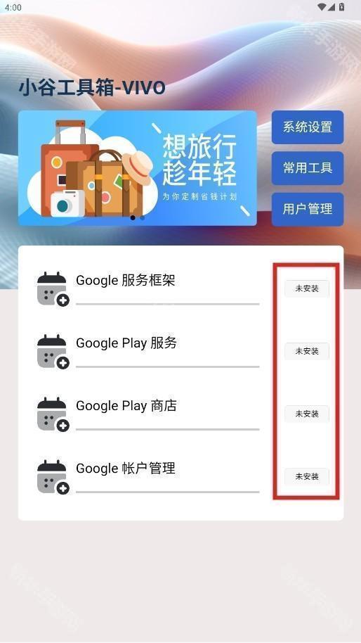 【小谷工具箱】这是一款工具箱类型的软件,拥有各种不同方便快捷的小工具使用,这是一款专为想要安装谷歌三件套的安卓用户设计的安装软件。它帮助用户只需单击一下即可轻松安装,并无缝使用Google Play商店。它集成了谷歌服务框架和谷歌应用商店等核心组件的一键安装功能,支持华为HarmonyOS等多个平台。只需一键下载其他模块版本即可安装Google三件套,使其方便易用。
