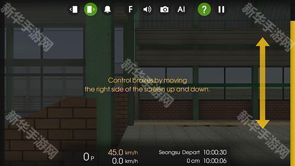 -玩家将右边的黄色减速条拉为0,将左边加速条拉为1~5档都可以,列车就会开动啦,到达目的地之后需要停在标准线之内才能打开车门接送乘客,注意不要错过站台了哟!