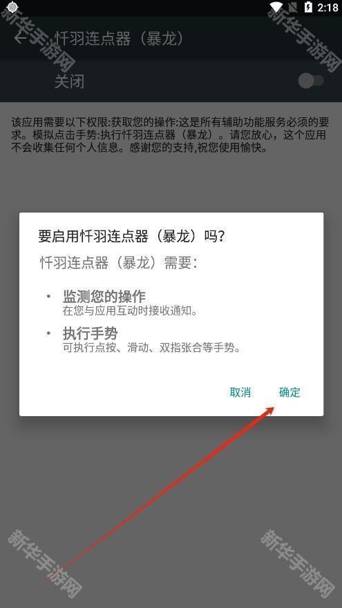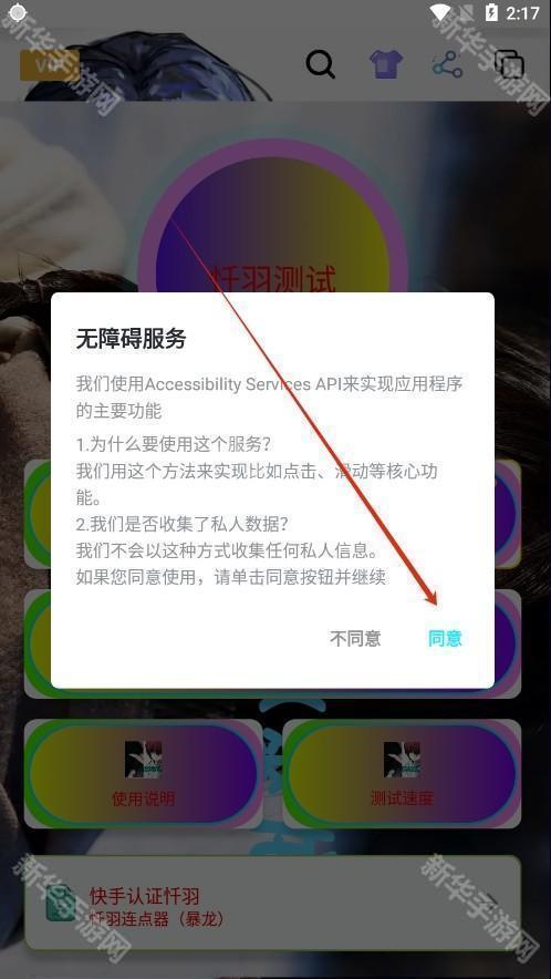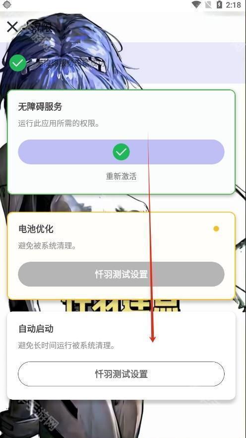 提示无障碍服务启动成功后,选择下方忏羽测试设置