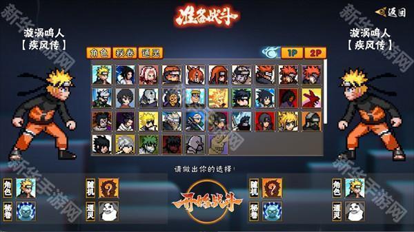 2.游戏中创建了无数角色,在这里你需要从佐助和鸣人等多个角色中进行选择。