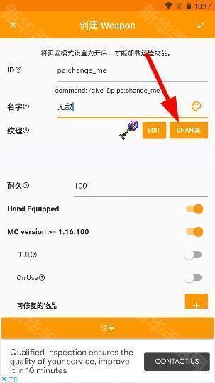 4、选择好物品后进入编辑界面,那个id不用改,名字可以自己随便输入然后点击字多的那个按钮;