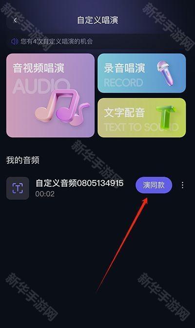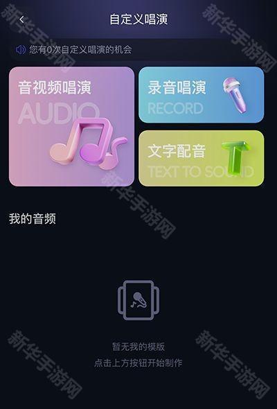 首页点击“自定义唱演”,创建音频模板