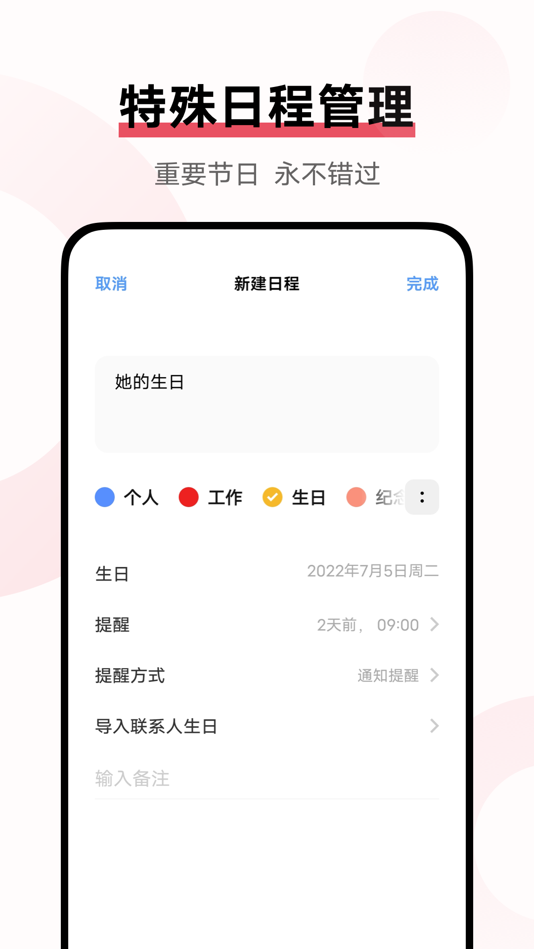 3、生日提醒:自动导入联系人中的生日信息,提供生日倒计时和提醒服务,让祝福不再迟到。