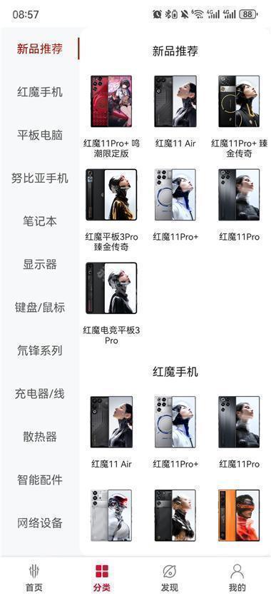 3、目前的明星车型是红魔7系、红魔6SPro系列、红魔6R系列、氮化镓充电器系列等。