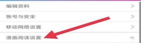 4、进入设置菜单后,选择“漫画阅读设置”选项。