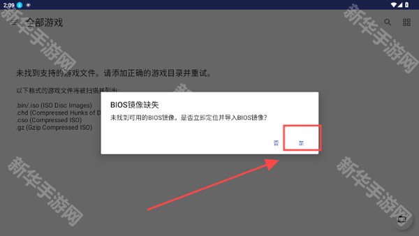 2、之后再点击启动bios,系统会提示bios镜像缺失,选择是导入bios。