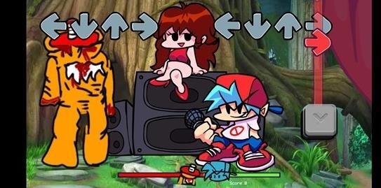 《周五夜放克熊出没日记模组》是一款音乐节奏类型的游戏,这款游戏是由国人自制的“周五夜放克”系列的模组,玩家将扮演主角,深入森林,和错误化的光头强与熊二进行战斗,这个森林已经彻底被错误化污染了,你是否能从这里逃离?玩家能通过虚拟键盘上的上下左右进行点击,完美点击的话能推动下方的进度条,只要最终能压制对面的敌人,即可获得关卡的胜利,但注意,难度会越来越高的。