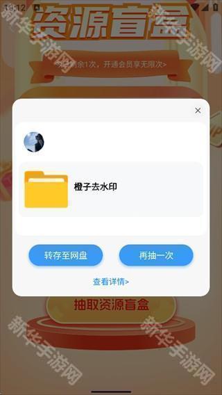 3、在「资源盲盒」中,点击「抽取资源盲盒」按钮,随机获得文件后,可选择「转存至网盘」保存到自己的空间。
