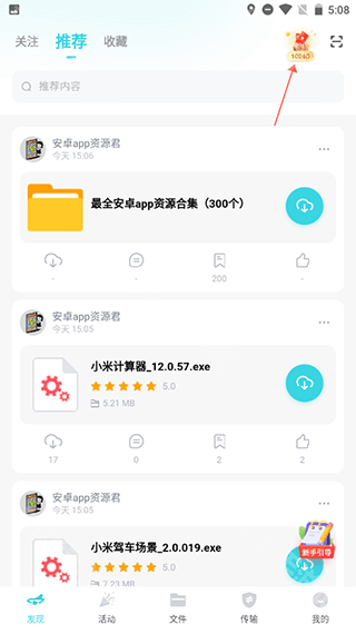 1、打开小飞机网盘App,在「首页」进入资源盲盒或好友圈。