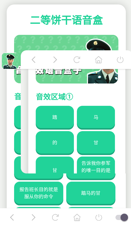 【二等饼干语音盒】这是一款语音盒子类型的软件,收录各类经典鬼畜名梗、搞笑片段及标志性台词,用户只需按下相应的按钮即可玩,这可以用来释放压力,为他们的生活增添一丝调味品。点击可以直接播放各种经典语录,也可以免费播放和分享。它还可以用于社交聊天,丰富每个人的用户体验,操作简单方便,而且非常适合在游戏中恶搞你的朋友,喜欢的快来试试看吧。