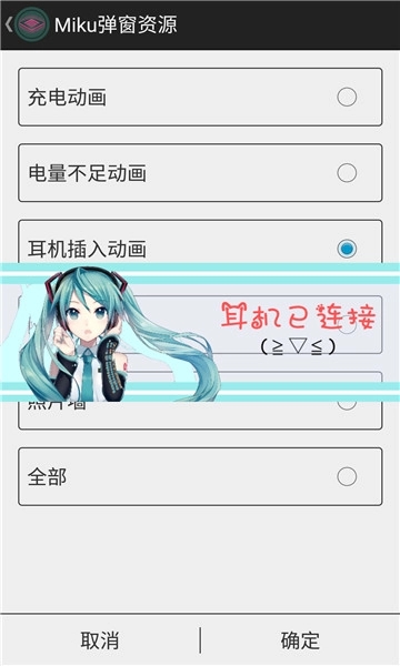初音弹窗是一款可以有效的帮助用户的手机界面焕发出独特的二次元风格的软件,在这款软件内有着多种实用的手机桌面插件和动漫充电特效等待你进行更换,是二次元用户们必备的主题美化软件。这款软件以初音未来作为主角为每一位用户,让每一位喜欢miku的用户的手机界面更加个性化和独特,更具有独特的美观效果,喜欢这款软件的用户就来本站下载试试吧。