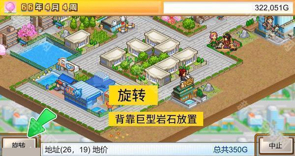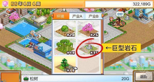 1、打开都市大亨物语温泉,点击菜单,首先建造一个巨型岩石;