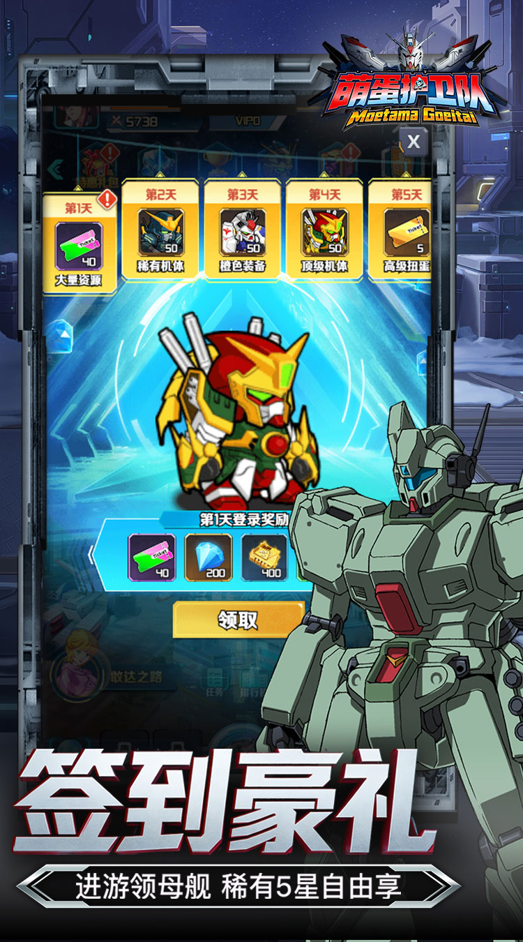 1.登录七天即可获得五星级稀有高达,并在线访问海量资源。
