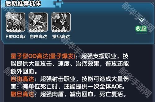 量子型O0高达(量子爆发):超强支援职业,技能提供大量攻击、速度、治疗效果,普攻还能额外回血。