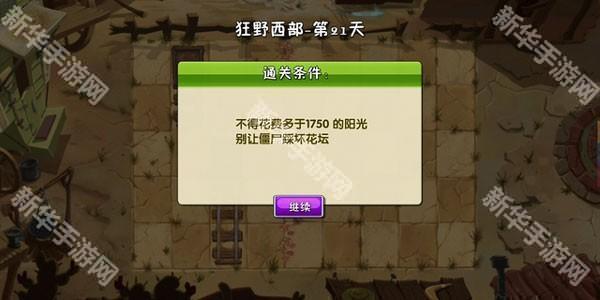 在这一关中,关卡的通关条件是让我们不得花费超过1750阳光,且不能让僵尸踩坏花坛。