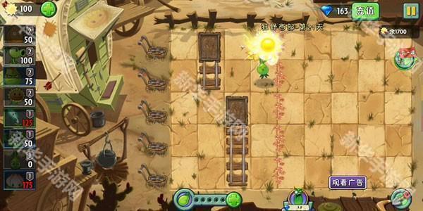 这一关虽限制阳光的使用度,但是我们去可以利用专门生产阳光的植物,以快速获得大量阳光,从而加速的种植植物以对抗来势汹汹的僵尸群。
