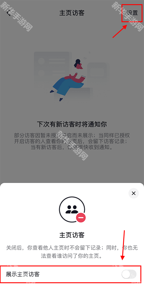 6、如果想关闭,直接点击右上角“设置”,再点击“展示主页访客”即可。