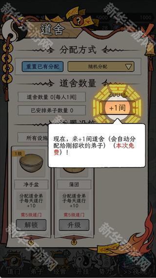 道舍是弟子休息与成长的关键设施,点击为新弟子分配道舍,可以大幅提升他们的每日道行。道舍的早期投入对弟子的成长至关重要,尽量不要犹豫,第一时间为他们分配。