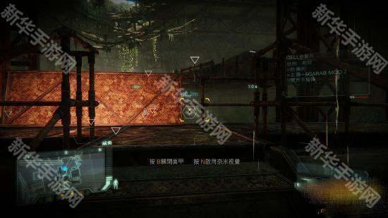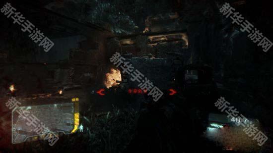 1、先知与塞可到达灌木丛附近,要在5个地方寻找外星人用的武器,在高处有火炮的攻击,要不断使用隐形隐蔽,能量快不够的时候就躲着掩体后面回复。
