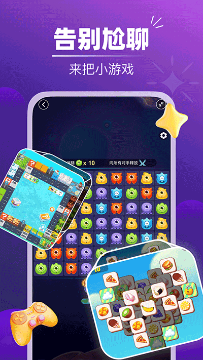 【音对语聊官方版】这是一款语音聊天类型的软件,这款软件由“花街互娱”工作室出品,这款软件能够让想要聊天的用户们都能在线上找到属于自己的灵魂伙伴。通过各种游戏,如实时聊天、卡拉OK互动和语音游戏,降低了与陌生人交流的门槛。用户可以自由加入并一起交流,支持随时随地与他人进行实时实时实时聊天和语音交流。如果用户在现实生活中独自一人,没有人可以交谈,这个软件绝对可以满足你的需求。用户可以在这里结识新朋友,参与实时互动,享受身临其境的社交体验。