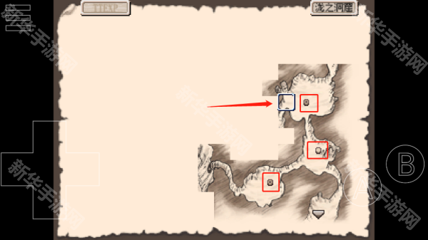 7、移动方框至“倒三角”,退出冒险回到城镇。