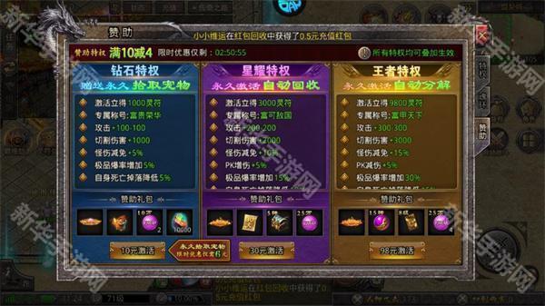 2、散人玩家进入游戏后建议只充前2档赞助特权,只需36元全部搞定